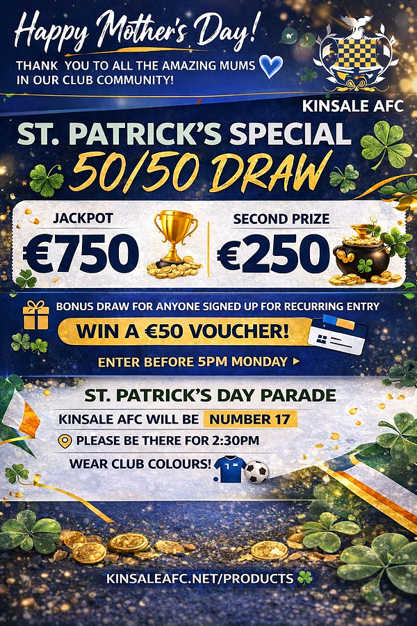 🍀 Kinsale AFC St. Patrick’s Special 50/50 Draw 🍀
